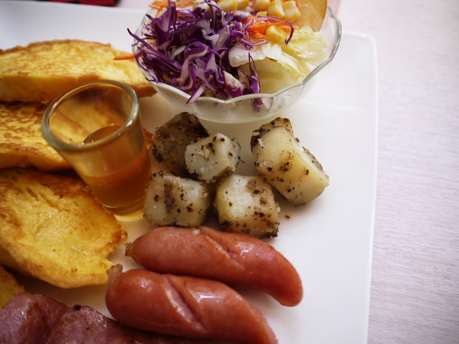 | 巴黎晨食餐 140元 (德國香腸,培根,馬鈴薯,沙拉,法國吐司) |